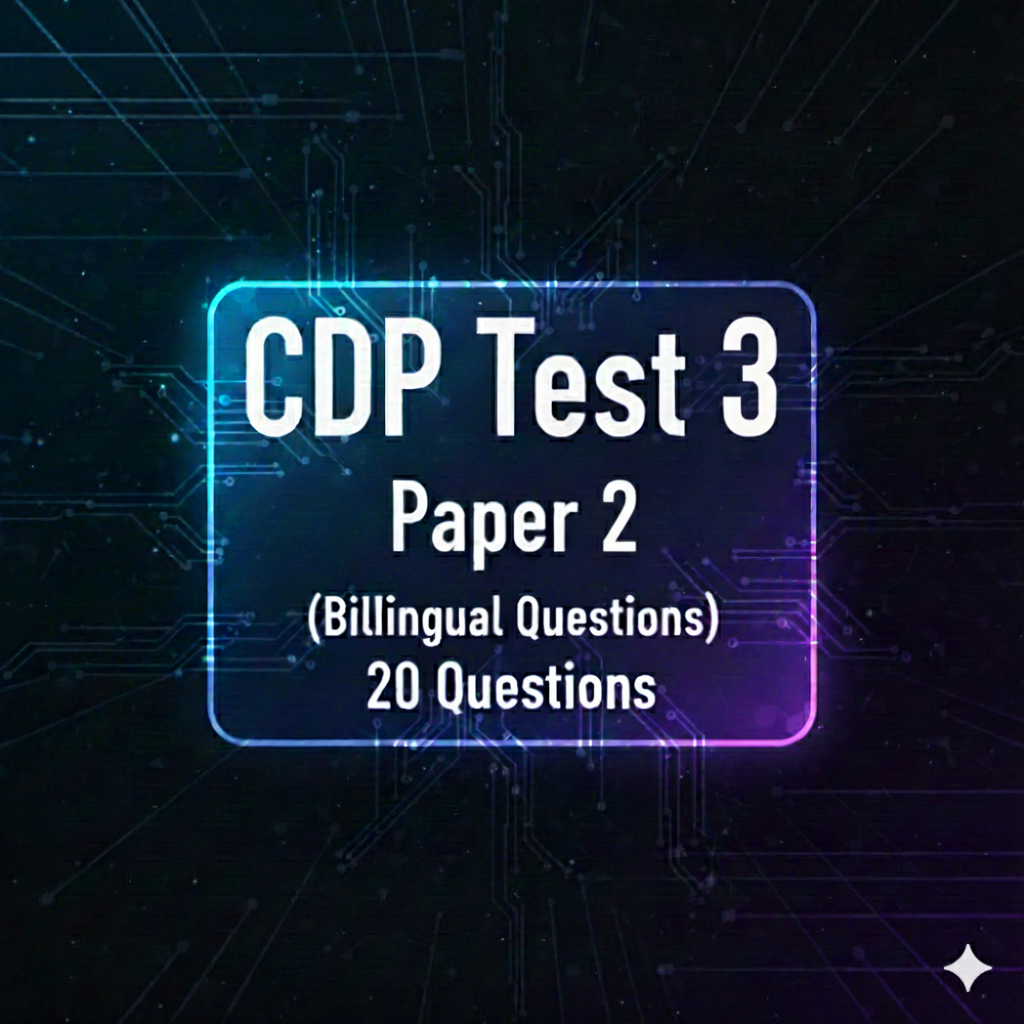 CDP Test 3 P2 1 / 20 Jean Piaget के अनुसार, बच्चे Formal Operational Stage (अमूर्त संक्रियात्मक अवस्था) में —(CTET Jan 2021) Options: Conservation, classification और seriation करने में सक्षम नहीं होते Symbolic और representational play में भाग लेना प्रारम्भ करते हैं Hypothetical-deductive reasoning और propositional thinking करने में समर्थ होते हैं Centration और irreversible thinking से आबद्ध होते हैं 2 / 20 किस psychologist के अनुसार बच्चों के Cognitive Development में “Cultural Tools (सांस्कृतिक उपकरण)” एक महत्वपूर्ण भूमिका निभाते हैं?(CTET Jan 2021) Albert Bandura (अल्बर्ट बंडूरा) B. F. Skinner (बी. एफ. स्किनर) Lev Vygotsky (लेव वायगोत्स्की) Jean Piaget (जीन पियाजे) 3 / 20 नूर विद्यालय में अपना lunch box भूल गई तथा यह कहते हुए Tanya से उसका lunch साझा करने के लिए कहा – “तुम्हें आज अपना lunch मेरे साथ share करना चाहिए, क्योंकि कल मैंने तुम्हारे साथ अपना lunch share किया था।” Lawrence Kohlberg के Moral Development Theory के अनुसार नूर का कथन ______ orientation को ______ stage पर दर्शाता है।CTET Dec 2019) Exchange (आदान–प्रदान), Conventional (परम्परागत) Law and Order (कानून एवं व्यवस्था), Post-Conventional (पश्च-परम्परागत) Obedience (आज्ञापालन), Conventional (परम्परागत) Being Good (अच्छा होना), Conventional (परम्परागत) 4 / 20 निम्नलिखित वर्णन को पढ़िए तथा कोहलबर्ग के नैतिक तर्क की अवस्था को पहचानिए। Read the following description and identify the stage of Kohlberg’s moral reasoning. CTET जुलाई 2019)वर्णन / Description: “अन्तःकरण के स्व-चयनित नैतिक सिद्धान्तों के द्वारा सही कार्य परिभाषित किया जाता है, जो कानून एवं सामाजिक समझौतों पर ध्यान दिए बिना सम्पूर्ण मानवता के लिए वैध होता है।” सार्वभौमिक नैतिक सिद्धान्त अभिविन्यास Universal ethical principles orientation यांत्रिक उद्देश्य अभिविन्यास Instrumental purpose orientation सामाजिक-अनुबंध अभिविन्यास Social contract orientation सामाजिक-क्रम व्यवस्था अभिविन्यास Law and social order orientation 5 / 20 “एक उचित प्रश्न/सुझाव के द्वारा बच्चे की समझ को उस बिंदु से बहुत आगे ले जाया जा सकता है, जिस पर वह अकेले पहुँच सकती है।” निम्नलिखित में से कौन-सी संरचना उपरोक्त कथन को प्रकाशित करती है? “Through an appropriate question or prompt, a child’s understanding can be taken far beyond the point she can reach alone.” Which of the following concepts does this statement illustrate? CTET जुलाई 2019) बुद्धि Intelligence समीपस्थ/निकटस्थ विकास का क्षेत्र Zone of Proximal Development साधारणकरण Generalisation संरक्षण Conservation 6 / 20 जीन पियाजे एवं लेव वाइगोत्स्की जैसे मनोवैज्ञानिक संरचनावादी अधिगम को किस रूप में देखते हैं? How do constructivist psychologists like Jean Piaget and Lev Vygotsky view learning? CTET जुलाई 2019) सक्रिय विनियोजन से अर्थ-निर्माण की प्रक्रिया Meaning-making through active regulation कौशलों का अर्जन Acquisition of skills प्रतिक्रियाओं का अनुबंधन Conditioning of responses निष्क्रिय आदतपूर्ण प्रक्रिया Passive habit-formation process 7 / 20 पियाजे के अनुसार, विशिष्ट मनोवैज्ञानिक संरचनाओं (अनुभव से सही अर्थ निकालने के व्यवस्थित तरीके) को क्या कहा जाता है? According to Piaget, what are the specific psychological structures (systematic ways of making sense of experience) called?CTET जुलाई 2019) मानसिक मेप Mental maps मानसिक उपकरण Mental tools स्कीमा Schema प्रतिमान Paradigm 8 / 20 किसी वस्तु के स्थायित्व की अवधारणा पियाजे के विकास के …… चरण में प्र